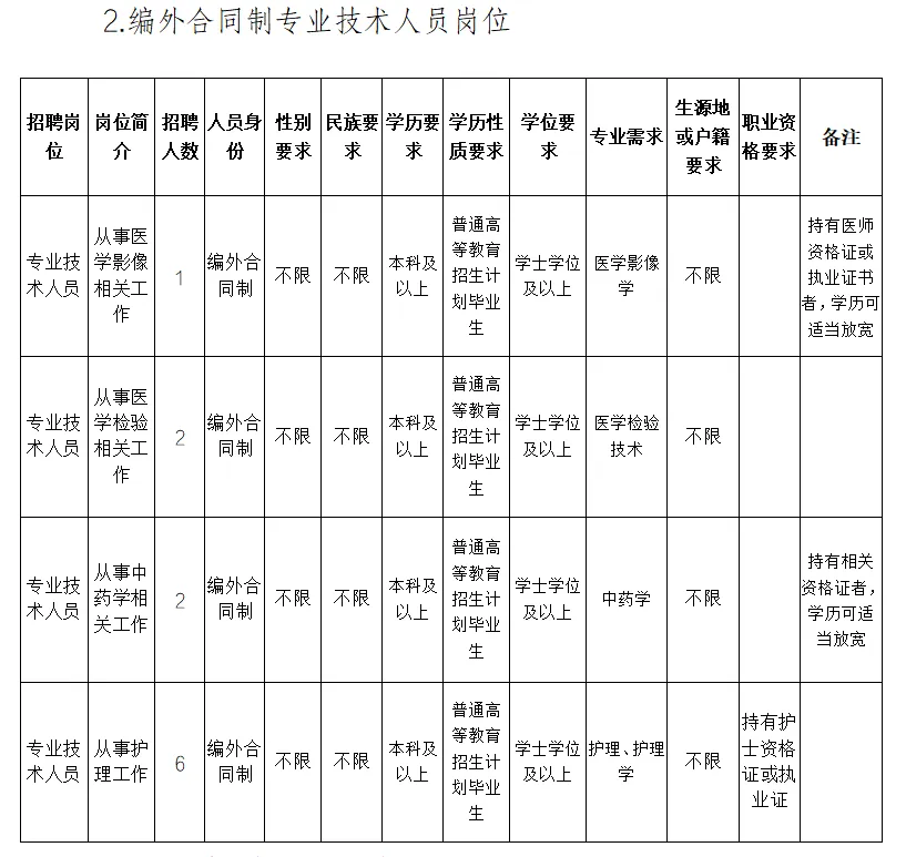2.编外合同制人员按《祥云县中医医院临聘人员管理办法》及其他相关规定执行。