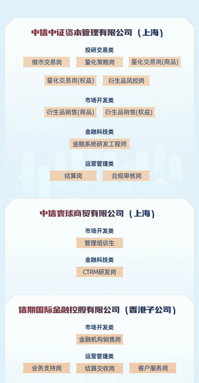 当前位置:首页>应届生招聘>春招丨应届生·校园招聘 |信梦想 期未来 | 中信期货2026届春季校招盛大启幕!