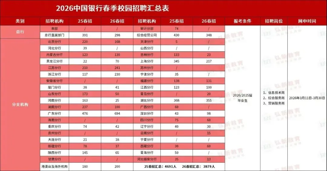 3月伊始,国有大行春季招聘正式拉开帷幕。中国银行今日发布2026届春季校园招聘公告,面向全国开放3879个岗位,为应届毕业生提供了优质的职业发展机会。本文将全面拆解本次招聘的核心要求、时间节点、报考要点,助力考生精准报考、顺利上岸。