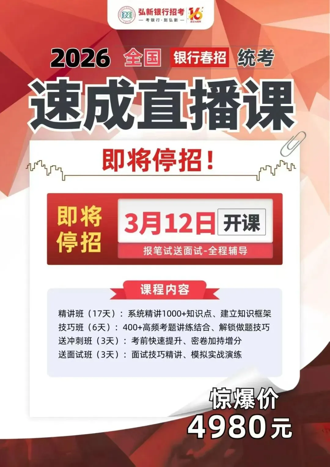 国有大行凭借稳定的职业发展、完善的薪酬福利体系,一直是应届毕业生求职的热门选择。本次中国银行春招名额充足、门槛放宽,是应届毕业生不可错过的优质机会。建议考生尽早完成网申,科学规划备考,顺利拿到心仪的offer。