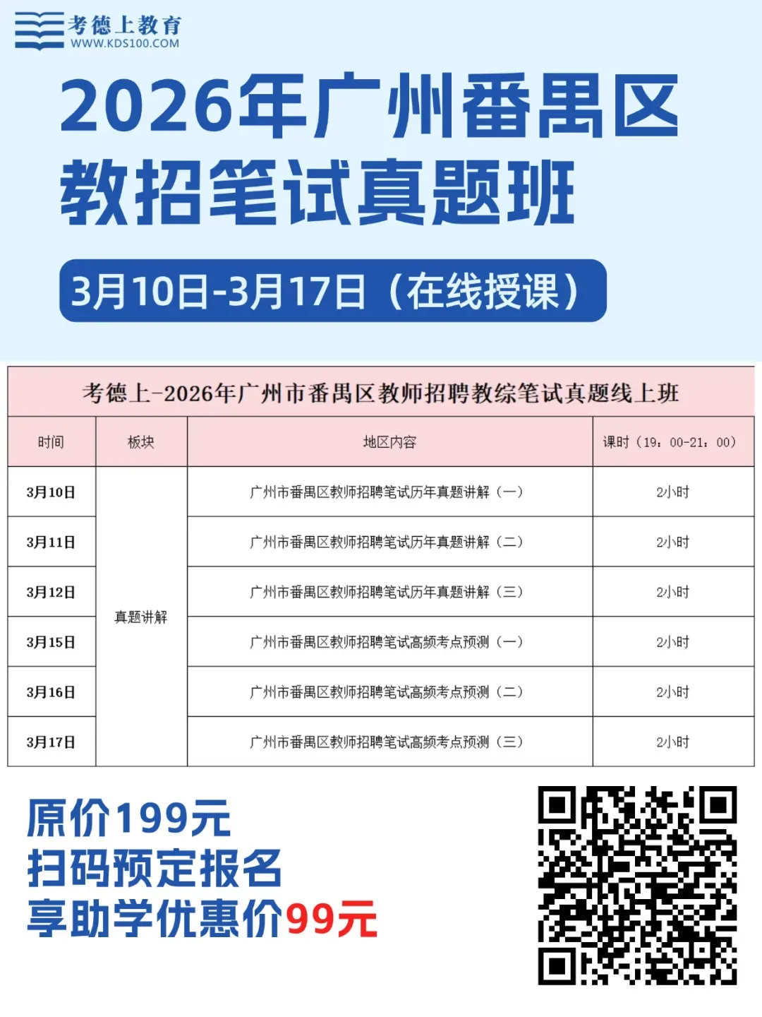 当前位置:首页>笔试招聘真题>广州市番禺区教师招聘笔试真题及预测冲刺班(助学价99元)