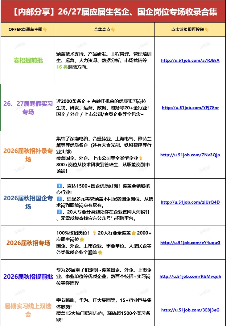 26届应届生名企、国企岗位专场收录合集