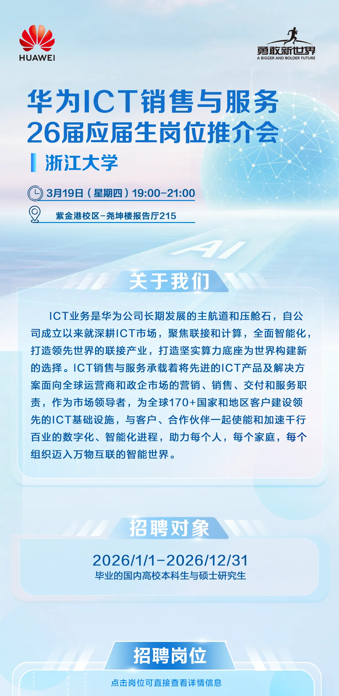 >招聘丨华为ICT销售2026届应届生浙大宣讲会招聘