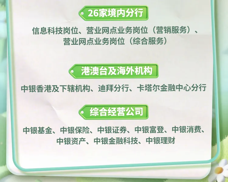 【校园招聘】中国银行2026年春季招聘和实习生招聘同步启动!