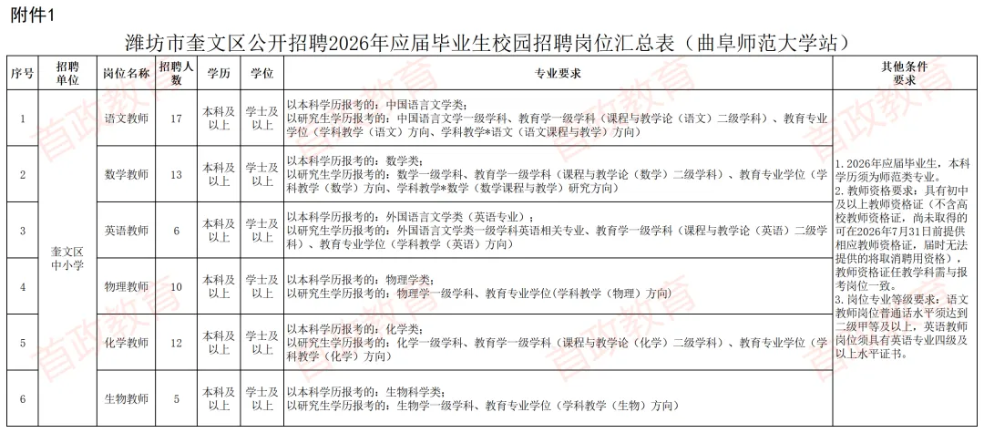 潍坊市奎文区公开招聘2026年应届毕业生校园招聘简章