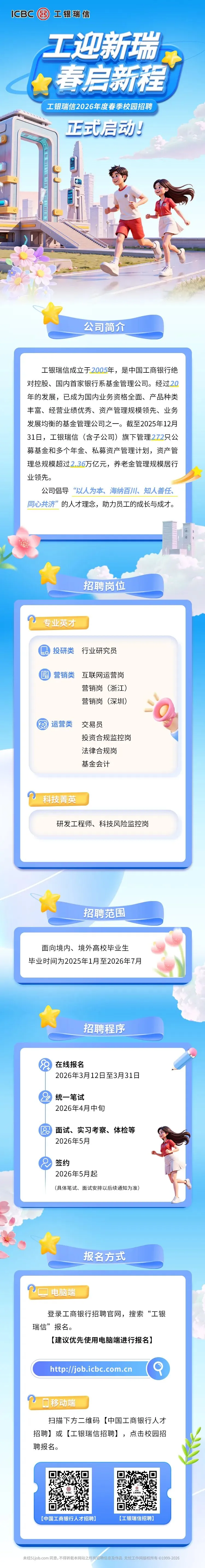春招丨应届生·校招丨工银瑞信2026年度春季校园招聘正式启动!