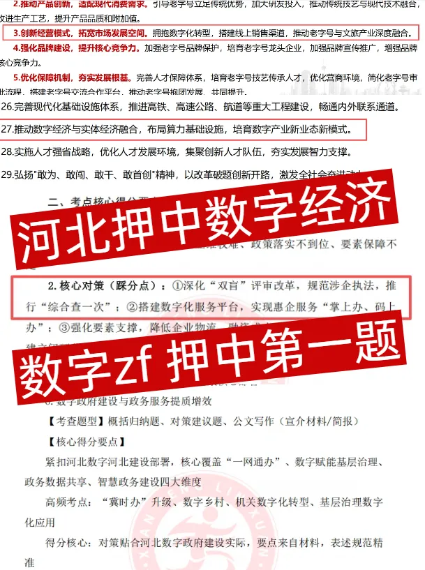 给了数字河北、数字政府(里面有公务员数字素养的部分描述,引用了江苏出的公务员数字素养的指南,第二题会用到)、数字经济、数字社会的一段材料(概念、相关文件等),要求阐述四者之间关系。500字,15分。