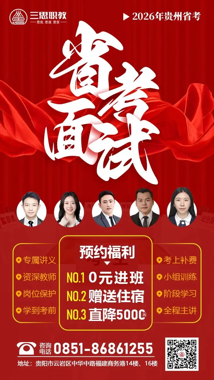 2026贵州省考笔试行测科目于2026年3月14日上午结束,为了让大家更好地了解到自己考试的情况,根据同学们考试后的回忆,贵州金粉笔教育.三思公考为大家收集整理了贵州省考行测题目及答案,一起来看看吧~ 根据贵州省考公告显示:“笔试环节成绩于4月中下旬在“贵州人事考试信息网”公布。考生可登录本次招考专题网页、贵州人事考试网查询。”
