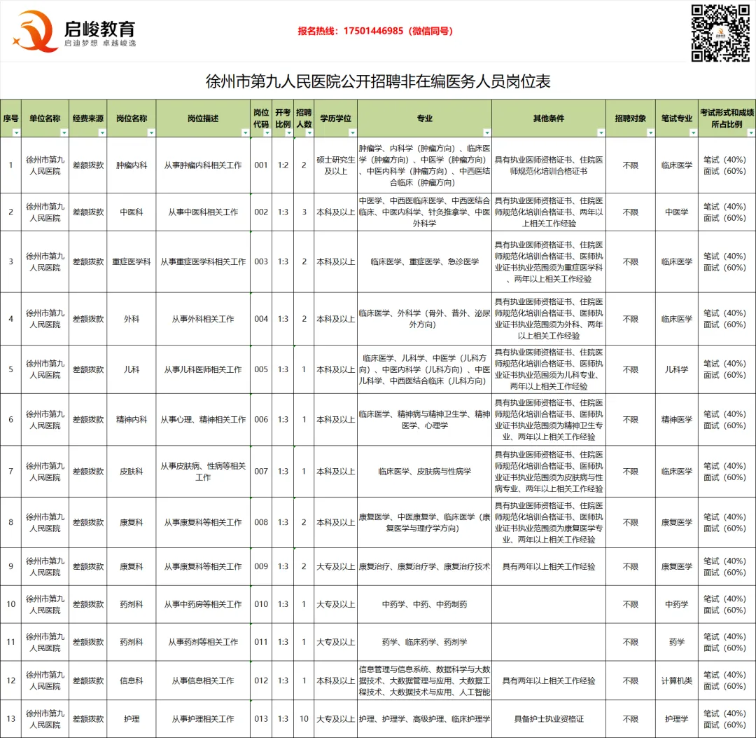 📢 重要通知:徐州市第九人民医院2026年公开招聘非在编工作人员公告已正式发布!