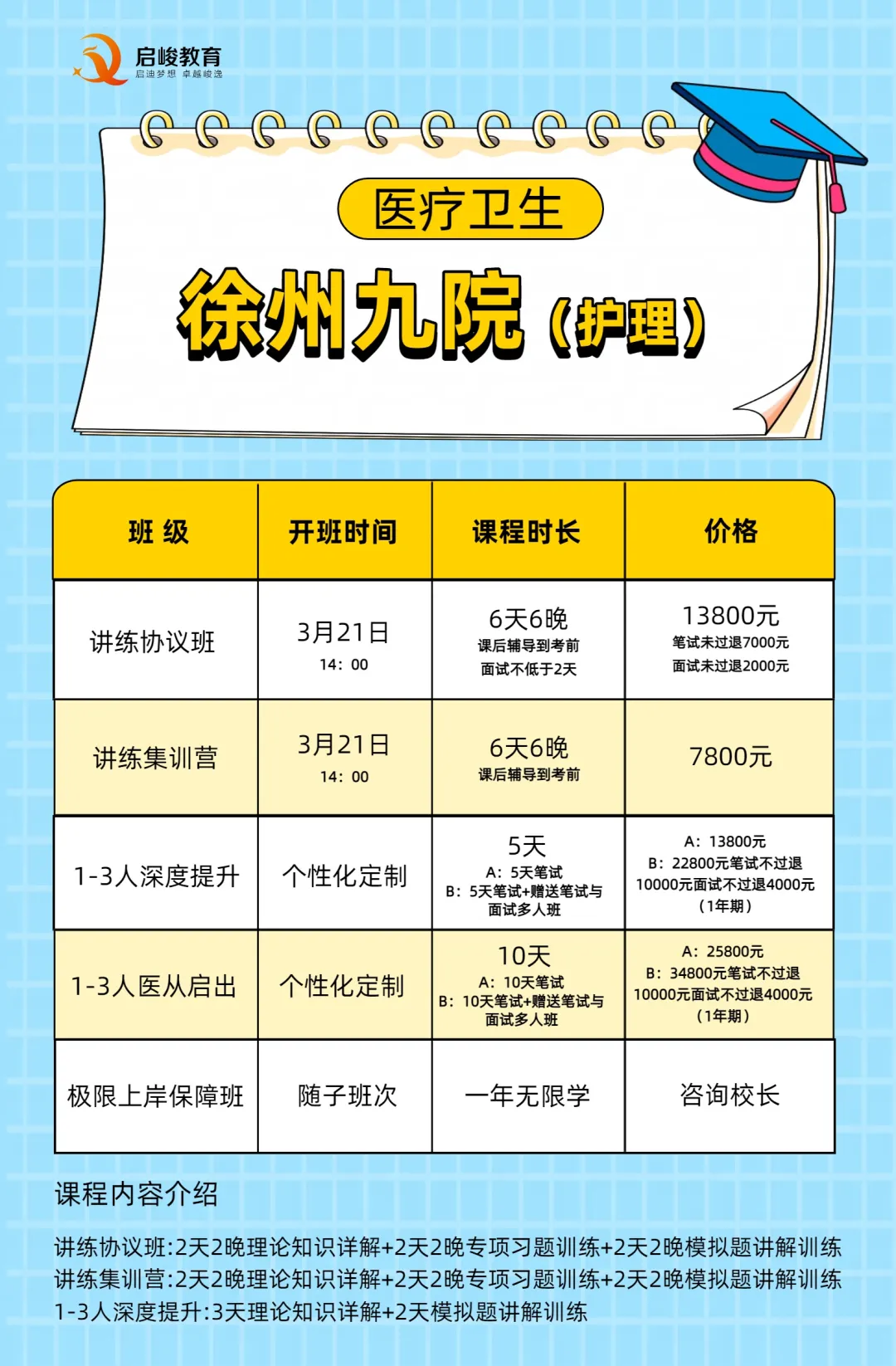 针对徐州市第九人民医院笔试特点,我们推出“徐州九院护理笔试专项班”,助你精准突围:
