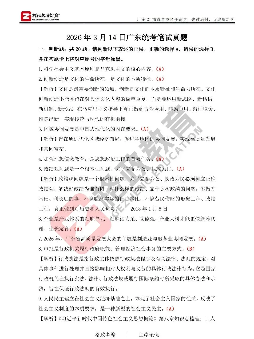 >答案已出!26年广东统考笔试真题(免费领取PDF版)
