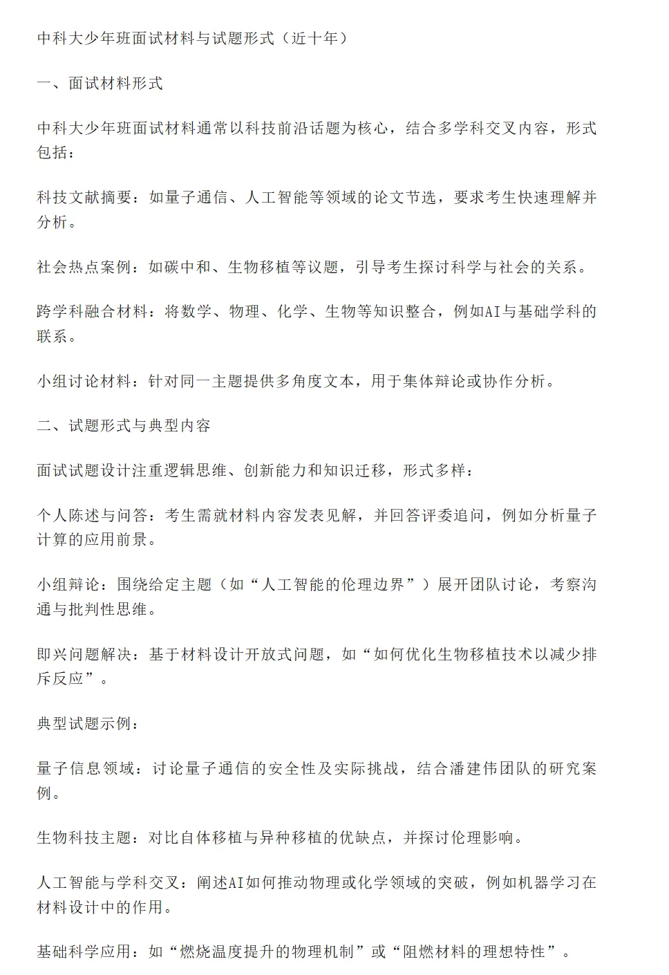 中科大少年班第二阶段笔试 、面试历年真题与典型题型