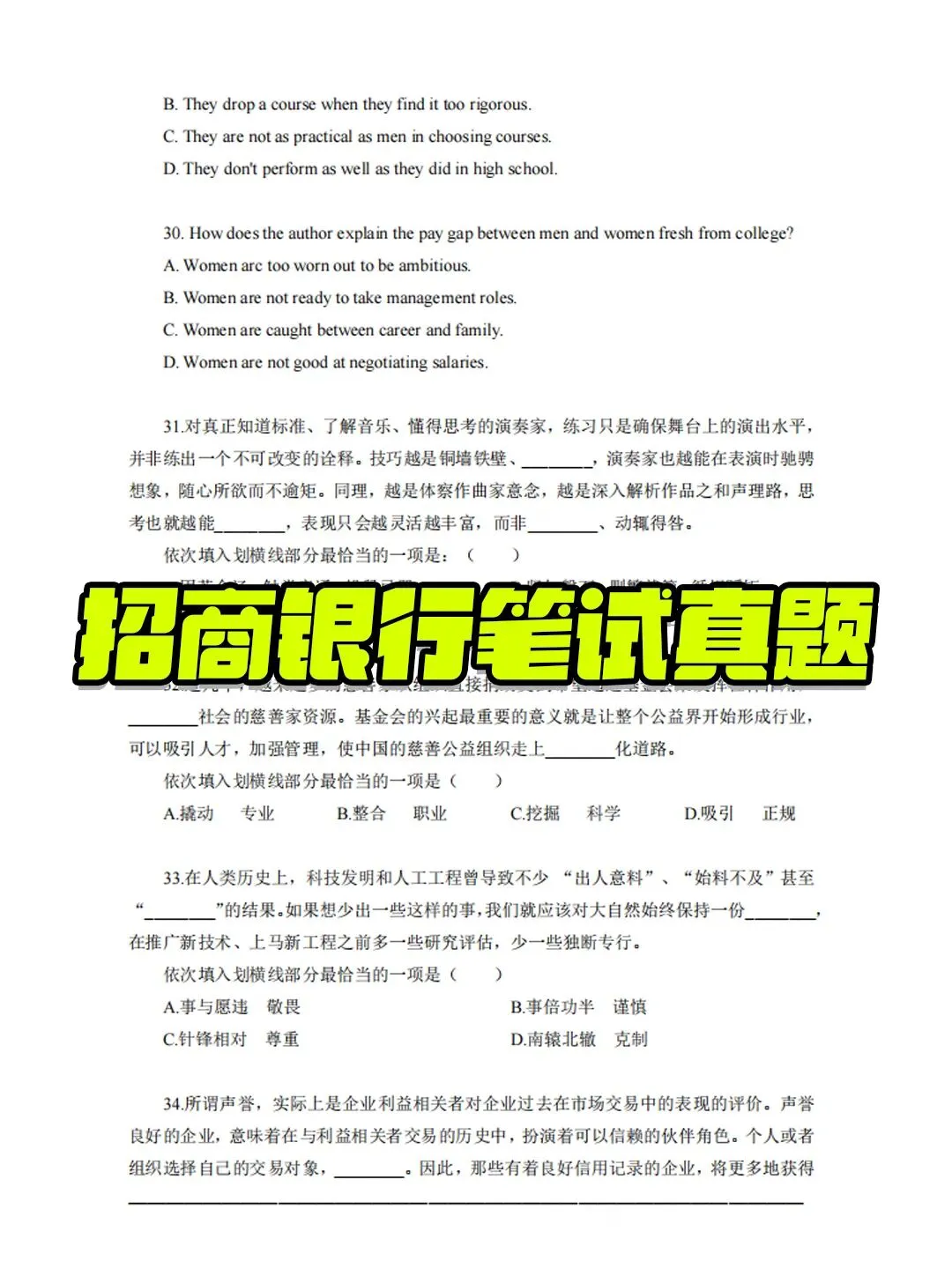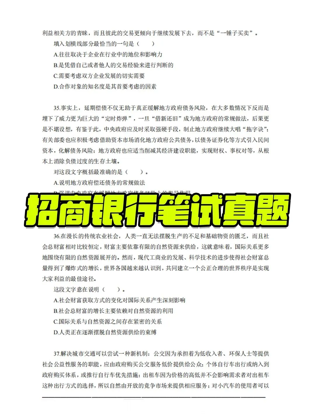 招商银行历年真题