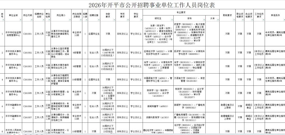 附件:1.2026年开平市公开招聘事业单位工作人员岗位表