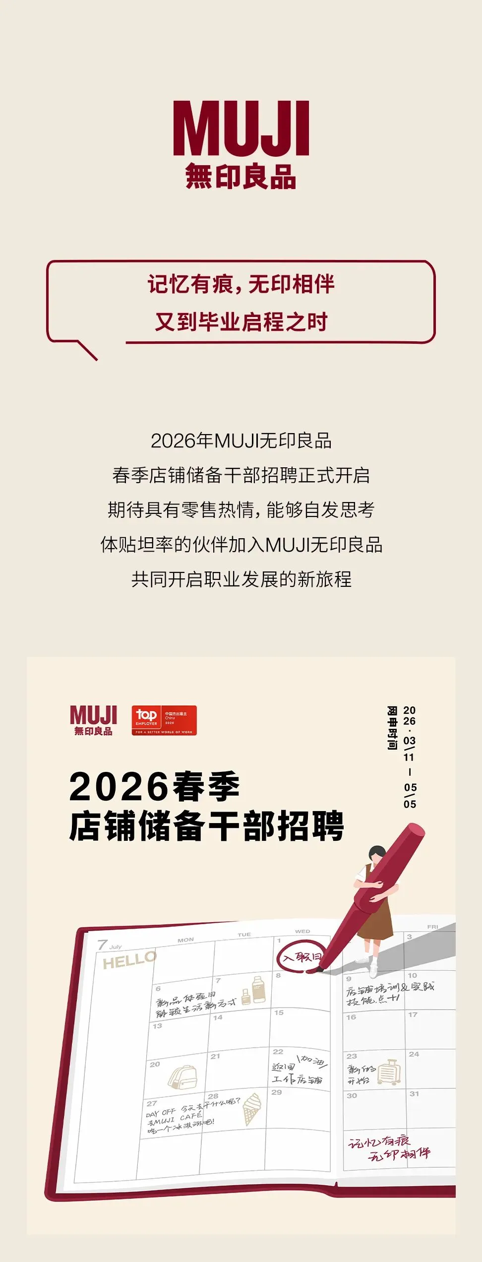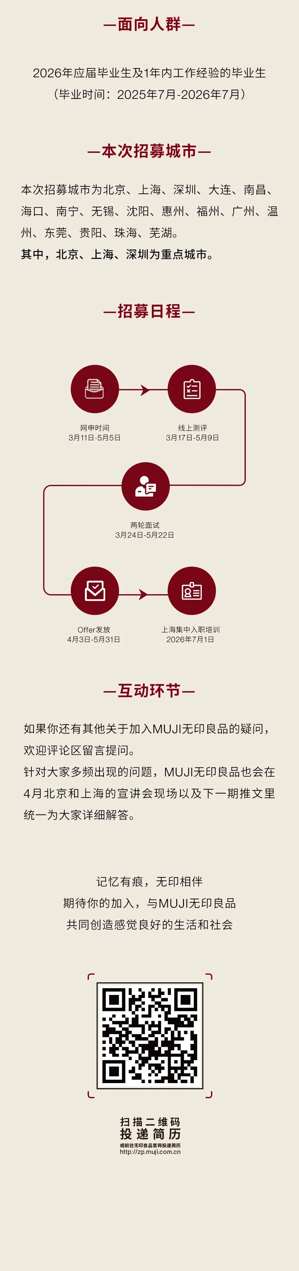 春招丨应届生·校园招聘 |快来MUJI无印良品接受你的春招offer