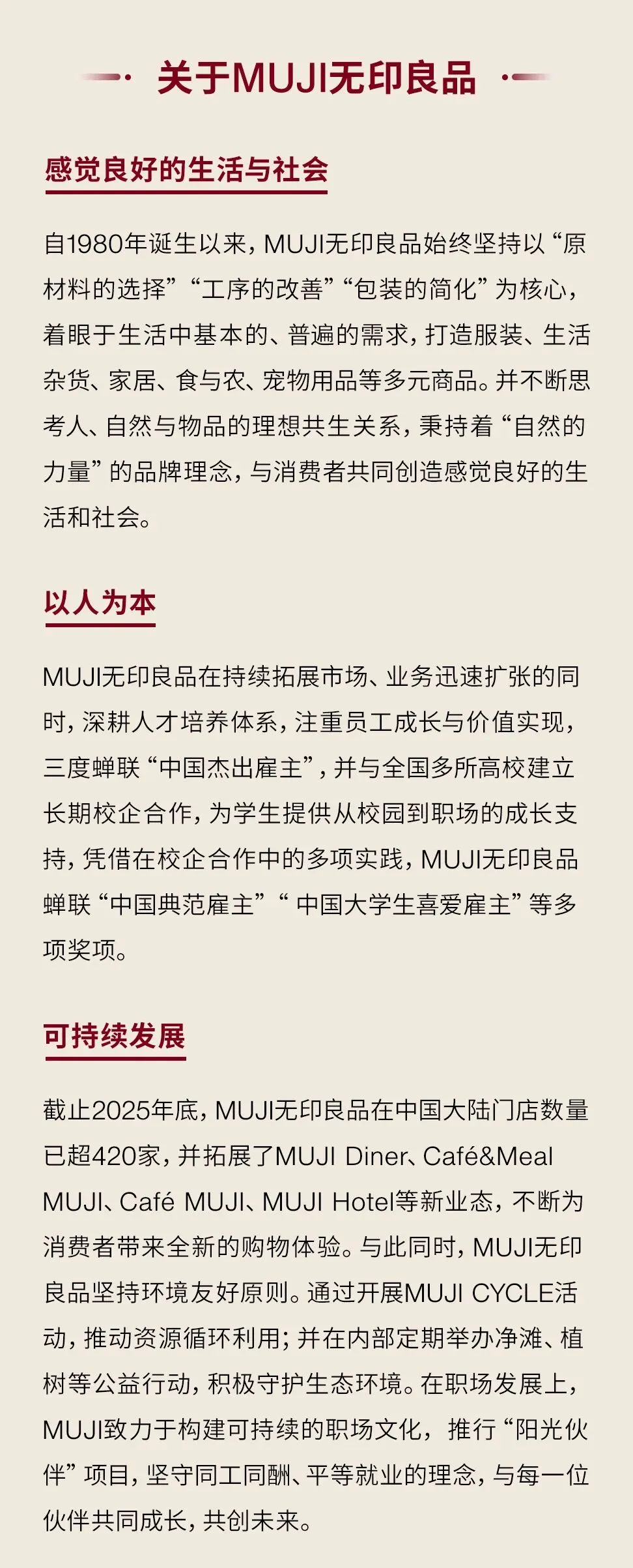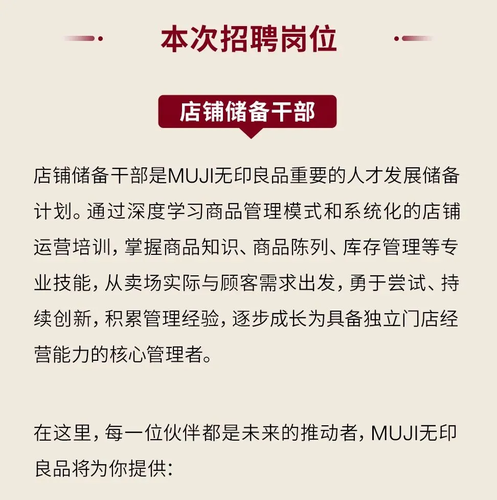 当前位置:首页>应届生招聘>春招丨应届生·校园招聘 |快来MUJI无印良品接受你的春招offer