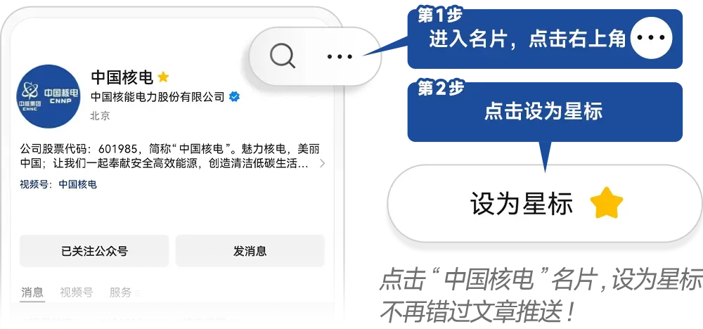 公司股票代码:601985,简称“中国核电”。魅力核电,美丽中国;让我们一起奉献安全高效能源,创造清洁低碳生活,让天更蓝,水更清,空气更清新。