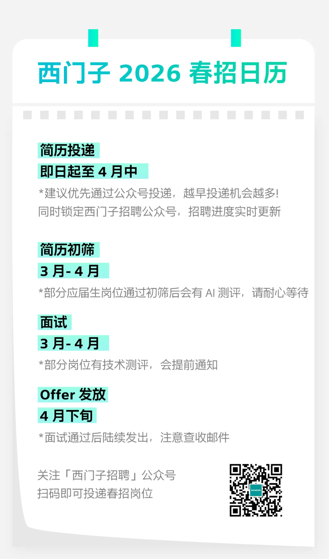 西门子2026春季校园招聘开招!应届生和实习生一起招!