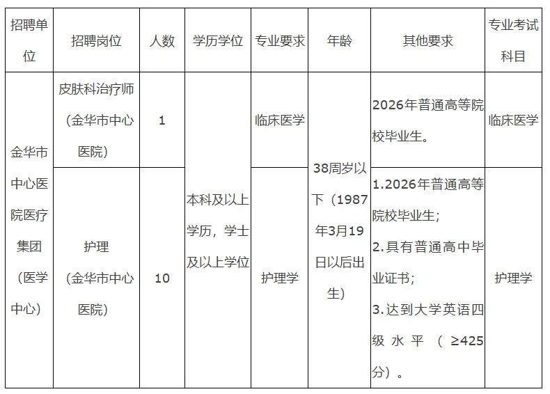 3.学历、学位以国家教育行政机关认可的相应证件文书为准。招考专业由金华市中心医院医疗集团(医学中心)参考教育部公布的专业目录(《普通高等学校本科专业目录》和《授予博士、硕士学位和培养研究生的学科、专业目录》)审查认定和解释。