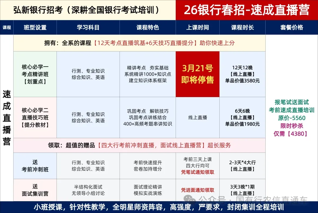 汇集了银行系统、邮政系统、农信社系统、各类资格 证、国企央企招考等考试每个科目、每个环节的高水平师资,并在考试方向、课程体系、授课方式等 研发方面不断创新。