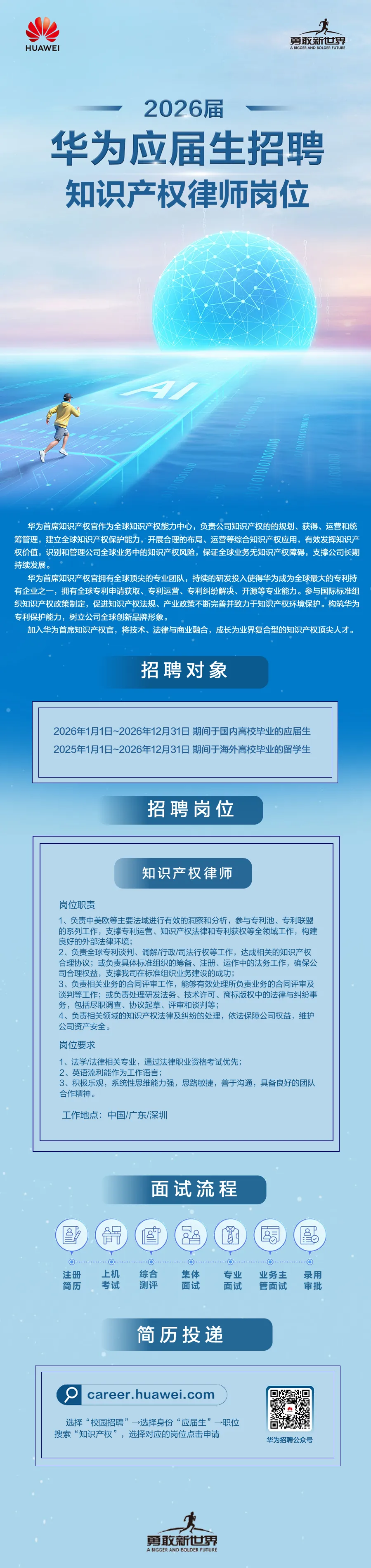 >华为知识产权2026届应届生招聘正式启动,快来加入我们