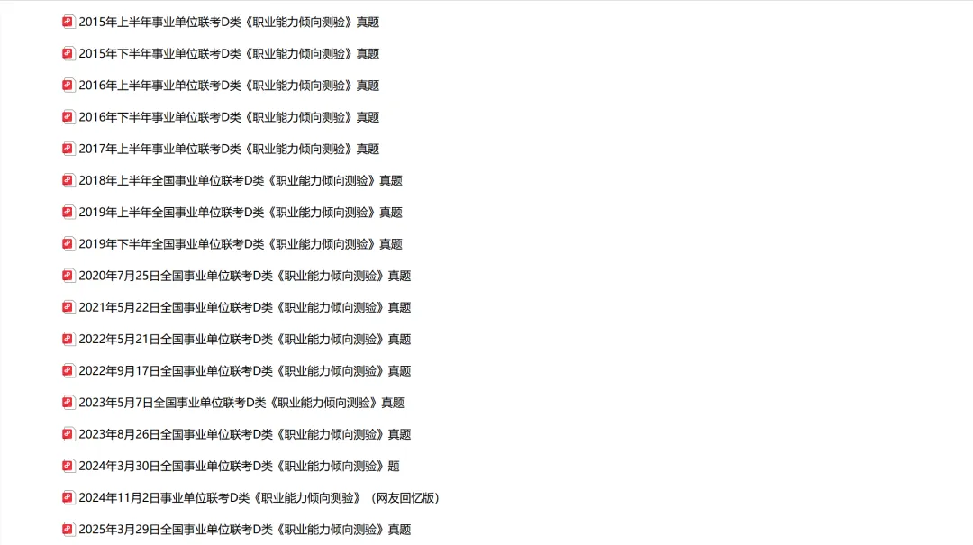 D类职业能力测验历年真题【2015-2025)