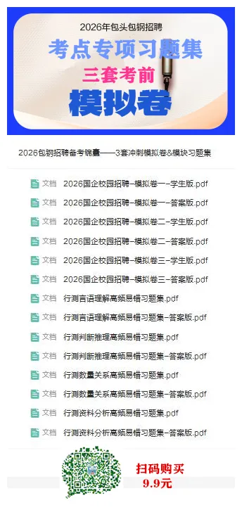 【笔试通知】包钢笔试邮箱通知&2026包钢考前3套模拟卷+专项模拟卷+历年