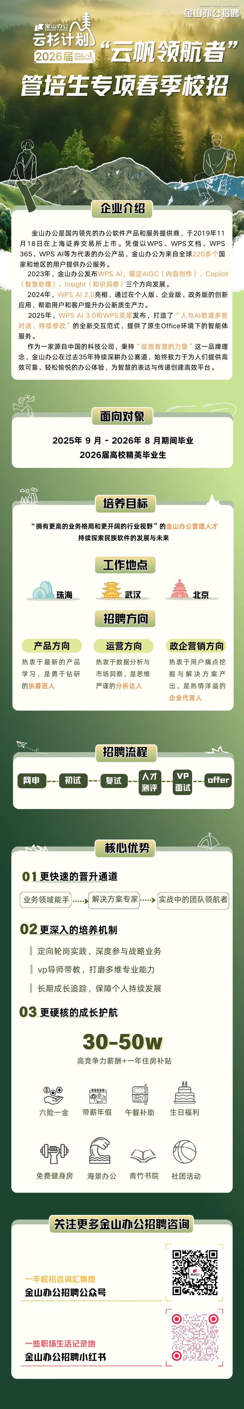 春招丨应届生·校园招聘 |金山办公26届管培生专项春季热招中!