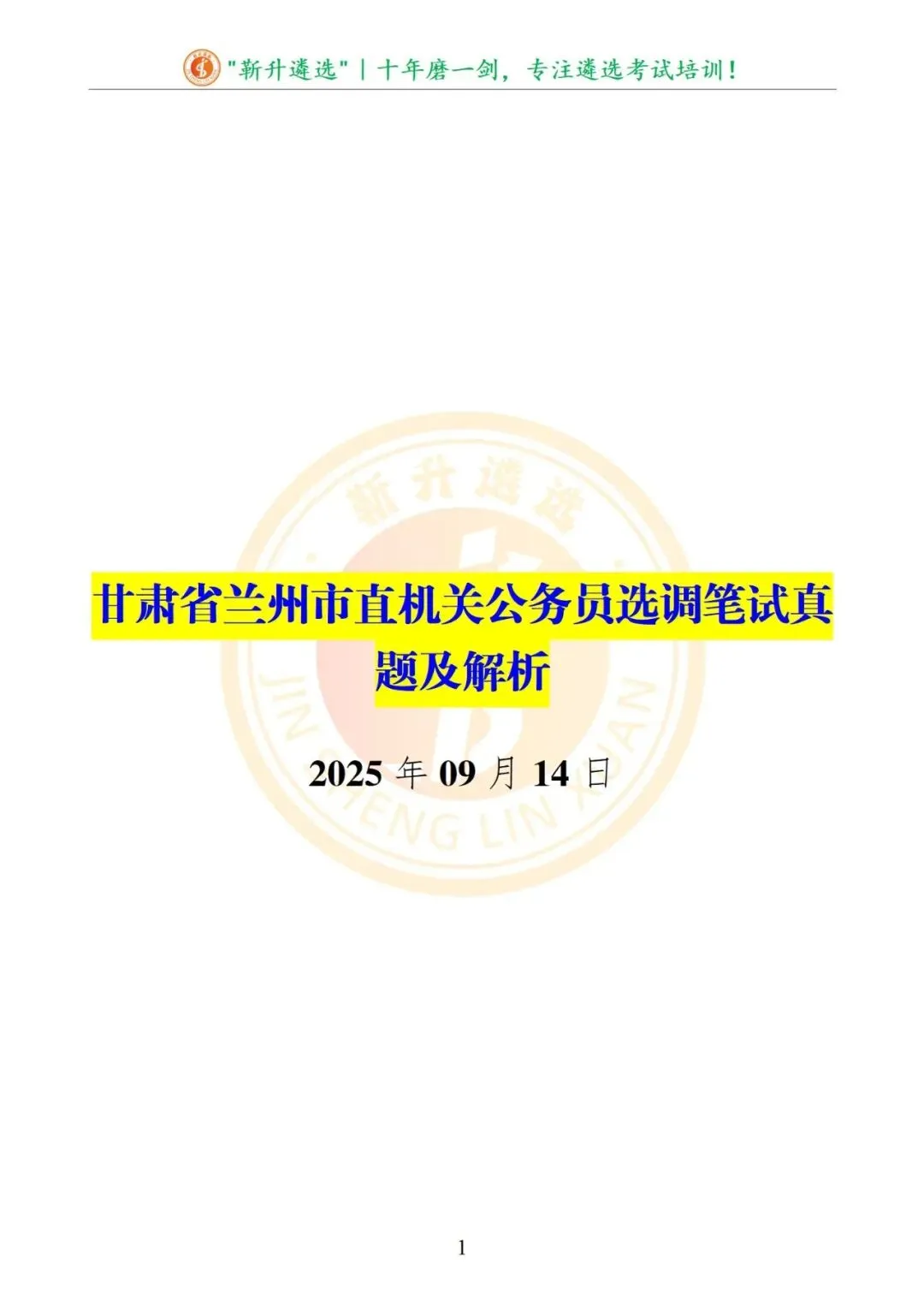 真题分享|2025年09月14日|甘肃|笔试|甘肃省兰州市直机关公务员选调笔试真题及解析