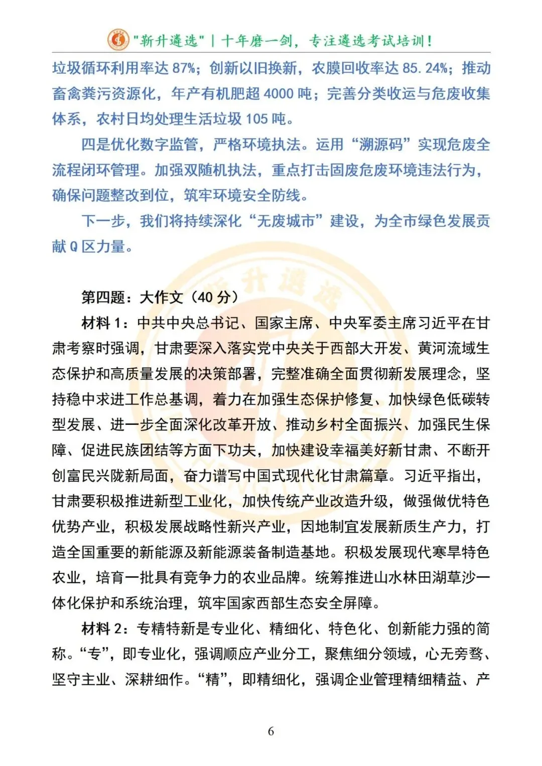 >真题分享|2025年09月14日|甘肃|笔试|甘肃省兰州市直机关公务员选调笔试真题及解析