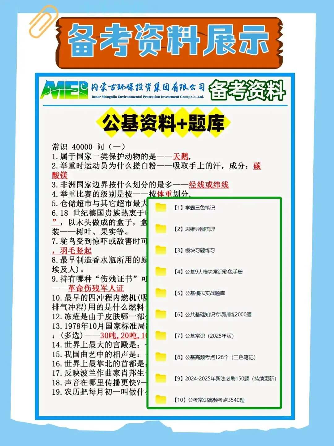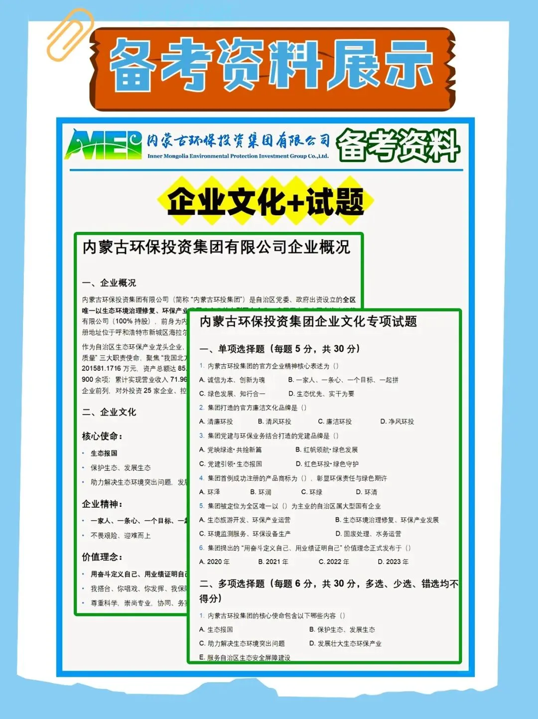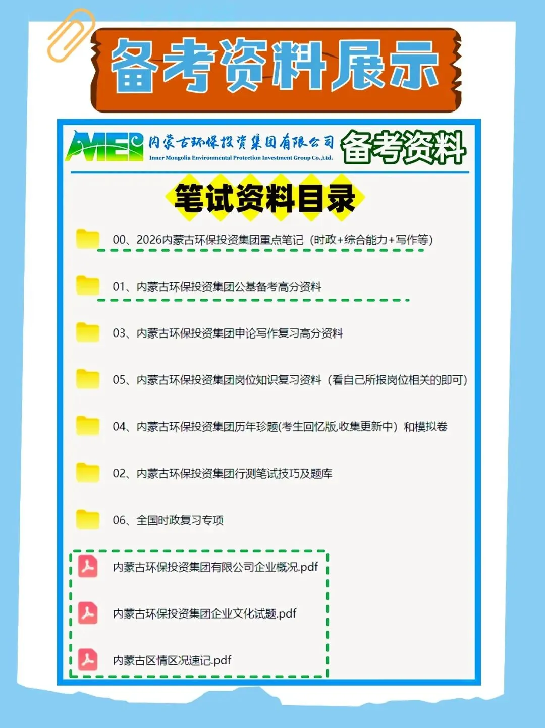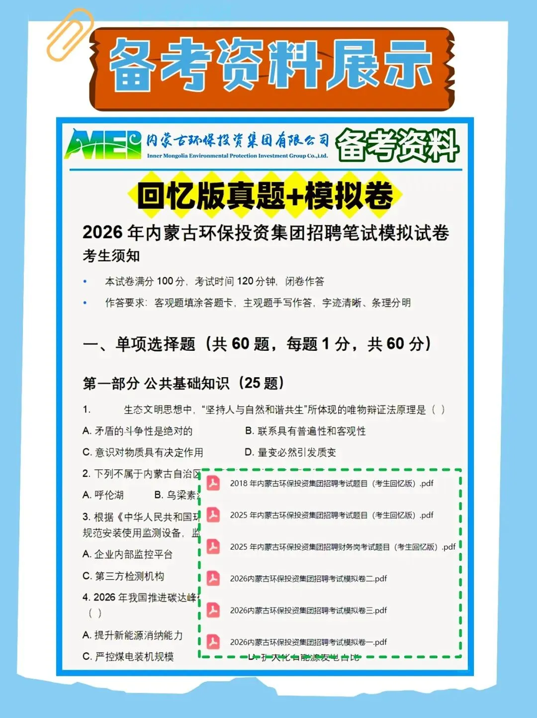 >2025年内蒙古环保投资集团笔试历年真题已经准备好,快来领取!还附带备考资料包