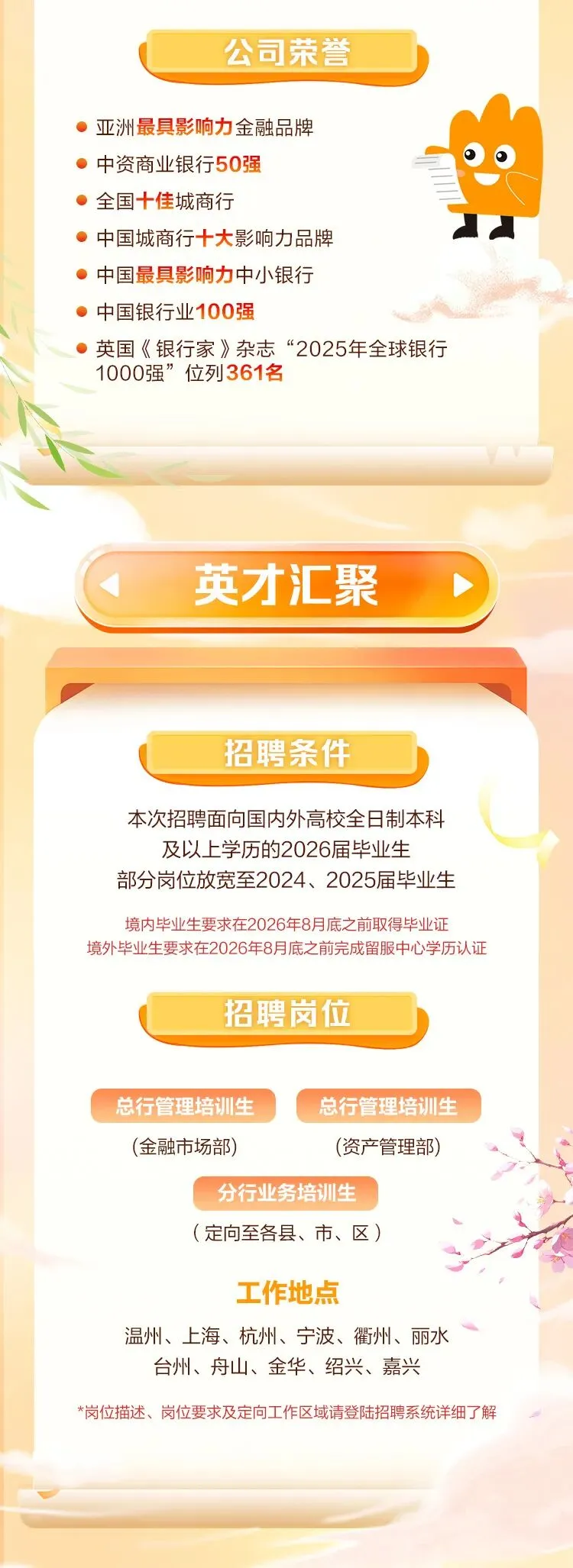 当前位置:首页>应届生招聘>春招丨应届生·校园招聘 |温州银行2026年春季校园招聘正式启动!