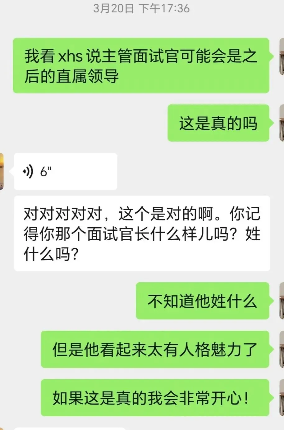 我很高兴听到他这么说,这一刻,我几乎确信了这是一场双向奔赴。我继续问:“其实我在准备面试的时候也看过一些信息,比如会不会问有没有对象啊,是不是独生子女这类问题?”