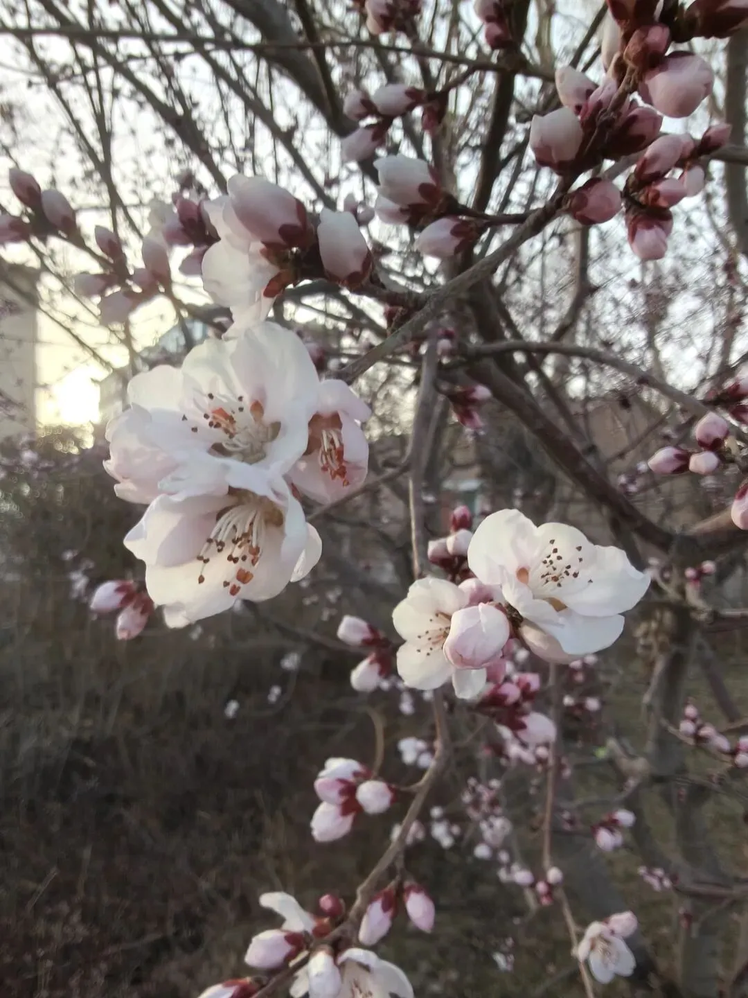 今天下午吃完饭打了羽毛球,发展路边的杏花开了,其实我也不知道是不是杏花,看着有点像↓