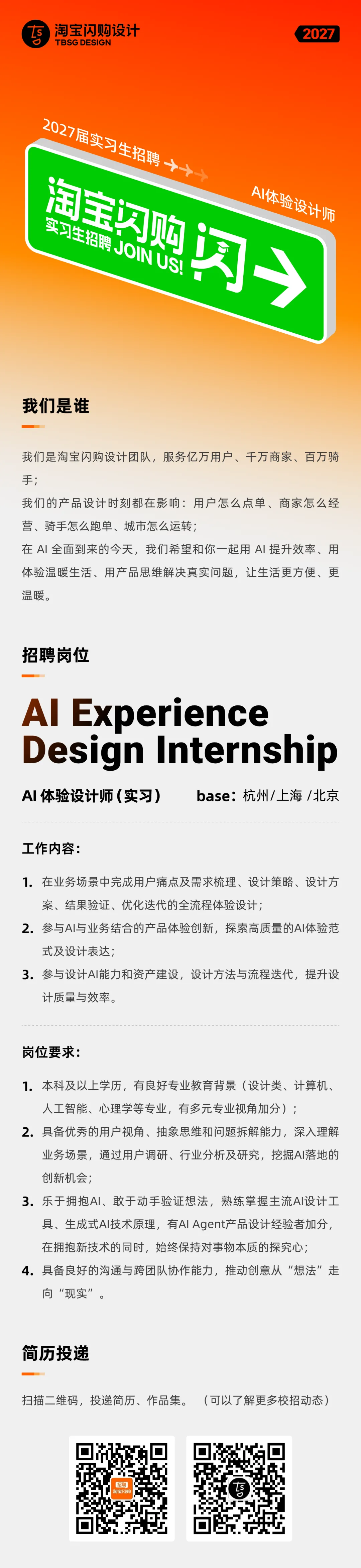 春招丨应届生·校园招聘 |27届实习|淘宝闪购设计热招开启