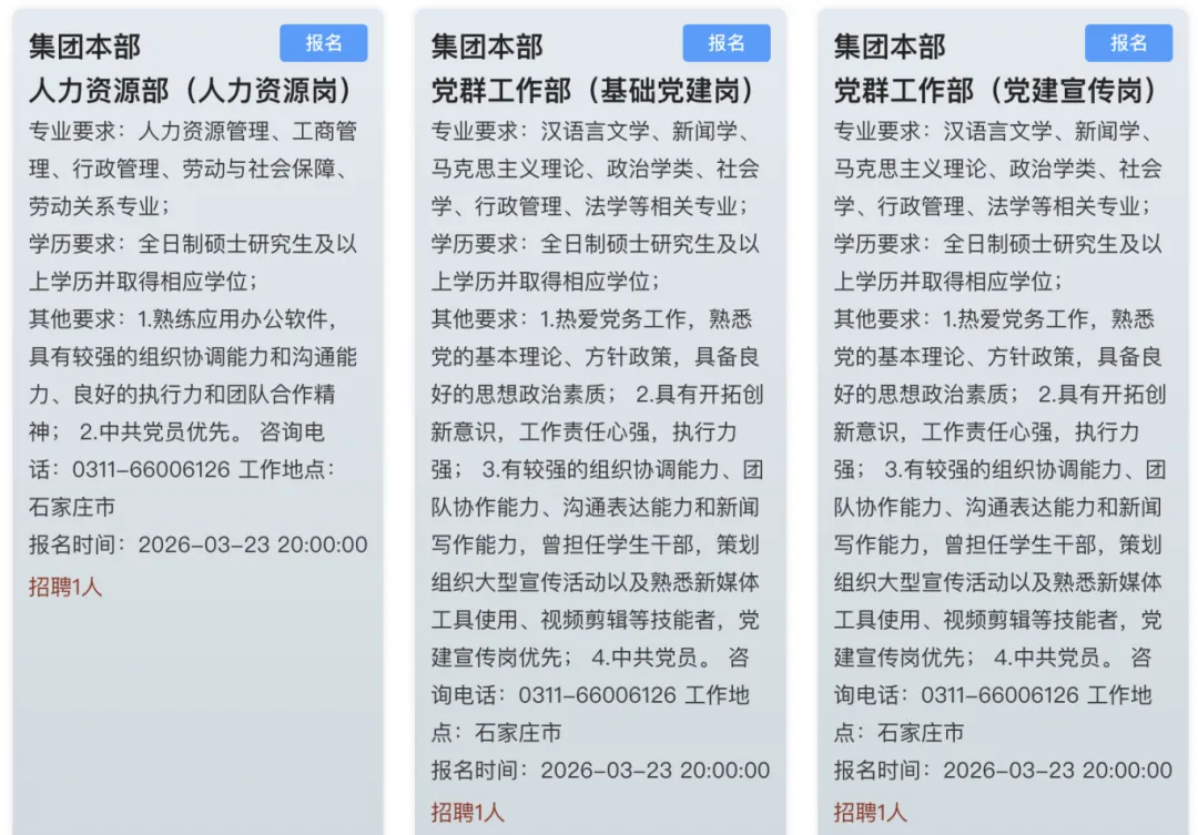 招聘要点:部分本科及以上可报,2026届毕业生,择业期内且未签订就业协议、未缴纳社保的毕业生】