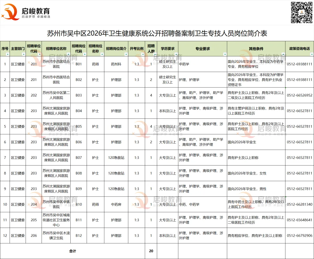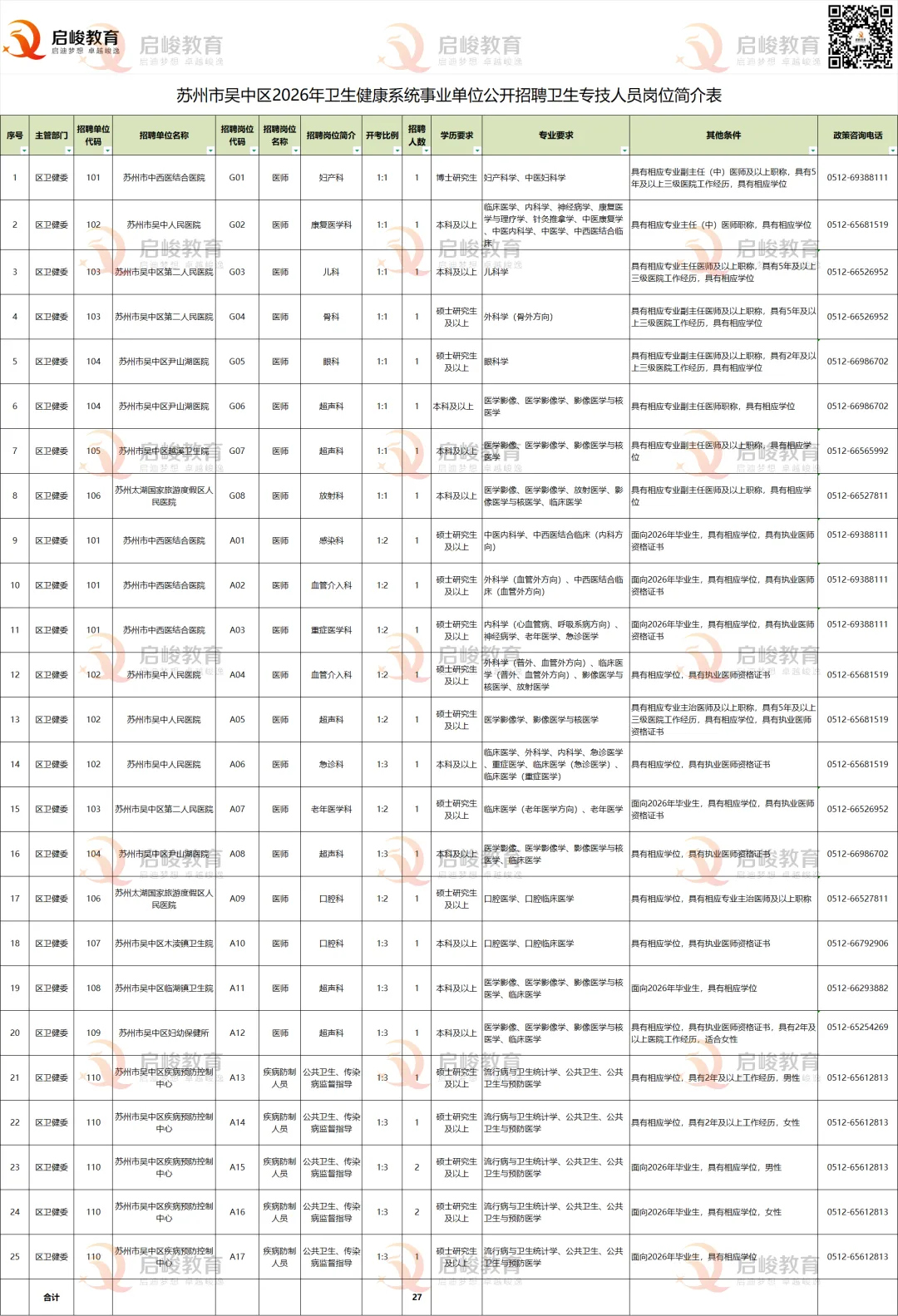 26年苏州市吴中区卫健委招聘岗位统计如下: