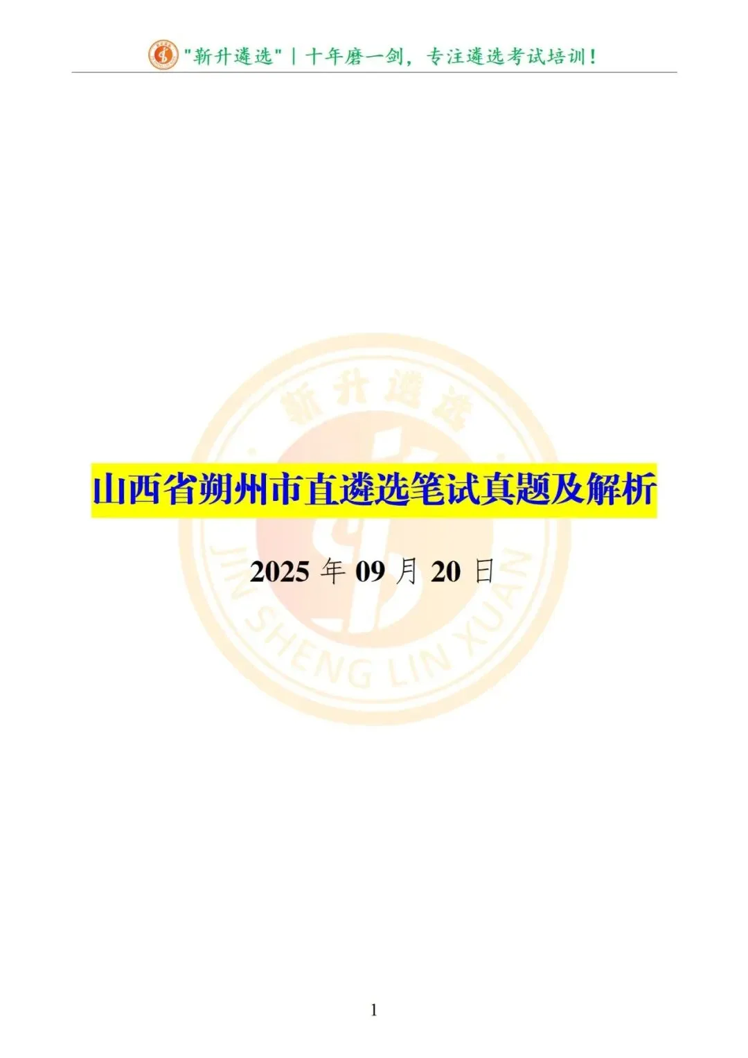 >真题分享|2025年09月20日|山西|笔试|山西省朔州市直遴选笔试真题及解析