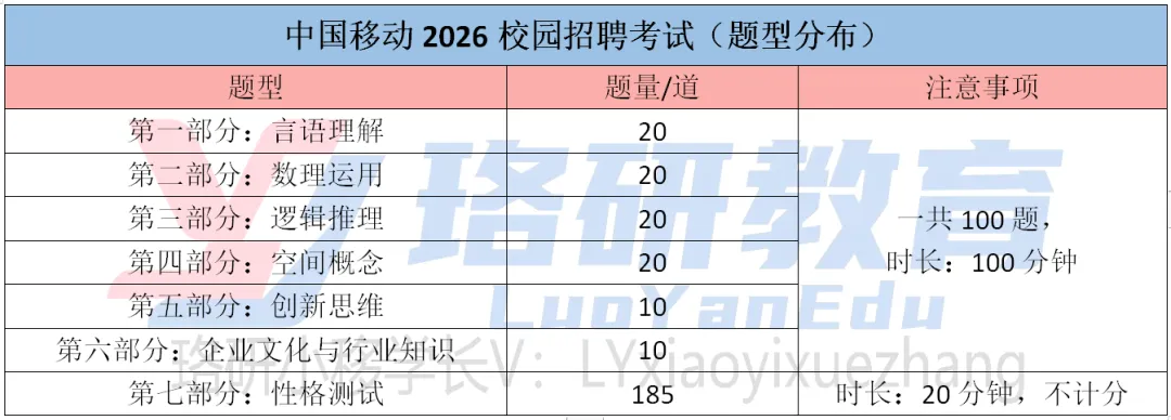中国移动2026春招笔试统一命题,题量大、时间紧,核心分为三大板块,提前摸清规律才能高效备考:
