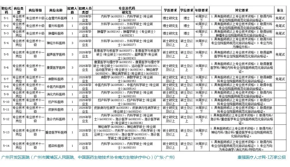 2、2026年广州市卫生健康系统校园招聘“优才计划”岗位需求表