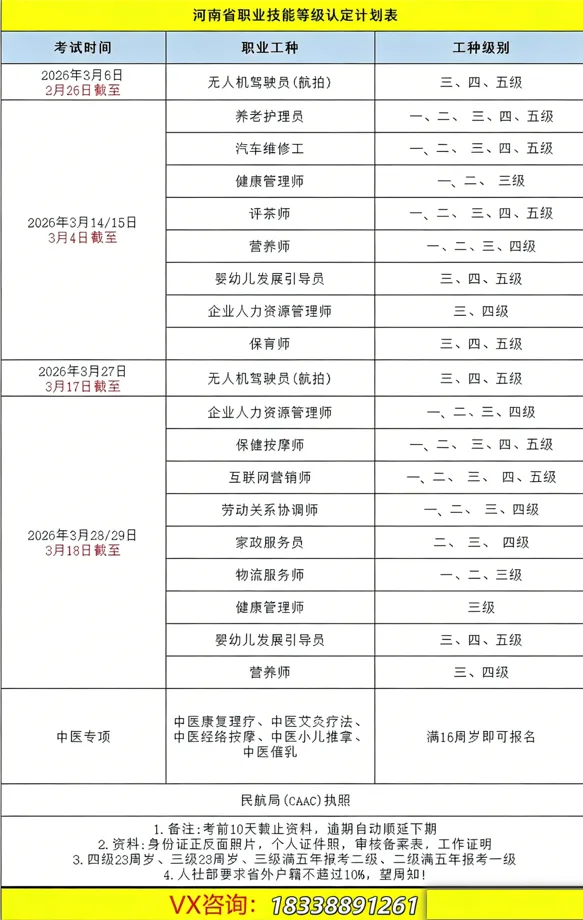职业技能等级考试安排