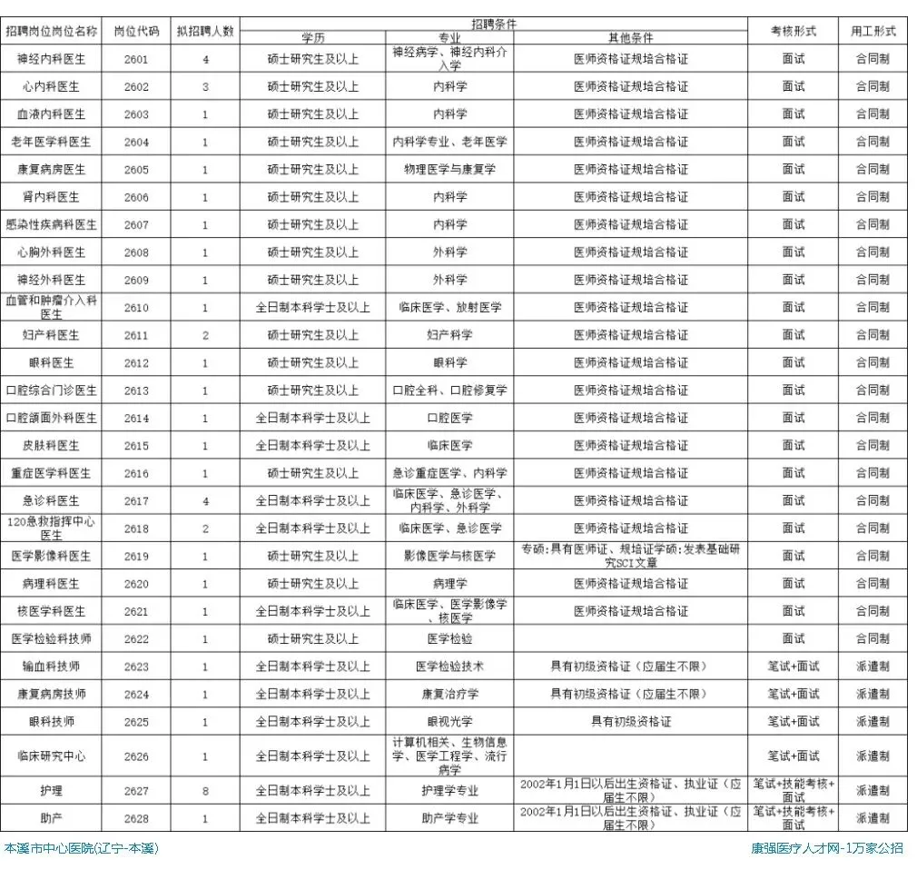 报名咨询电话:本溪市中心医院人力资源部024-42890522,024-42225099