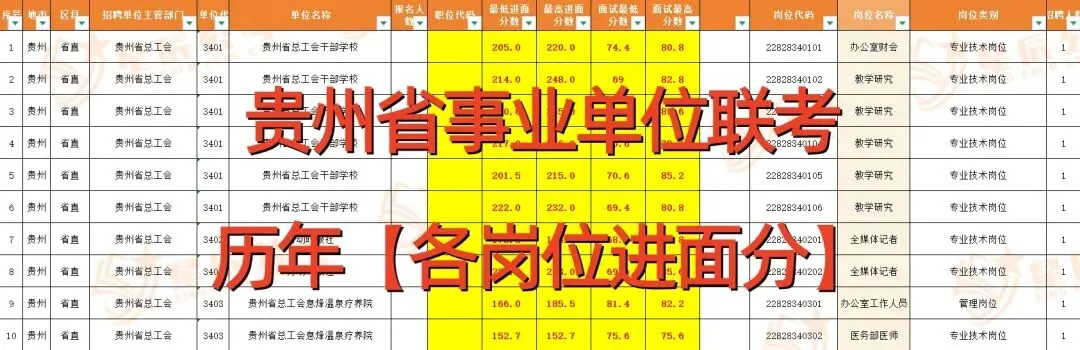 贵州省26年事业单位联考笔试结束后,想知道你报考的岗位多少分能进面?可以获取一份贵州省往年事业单位联考各岗位进面分进行对比查看。