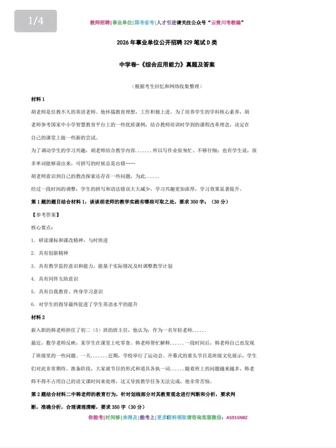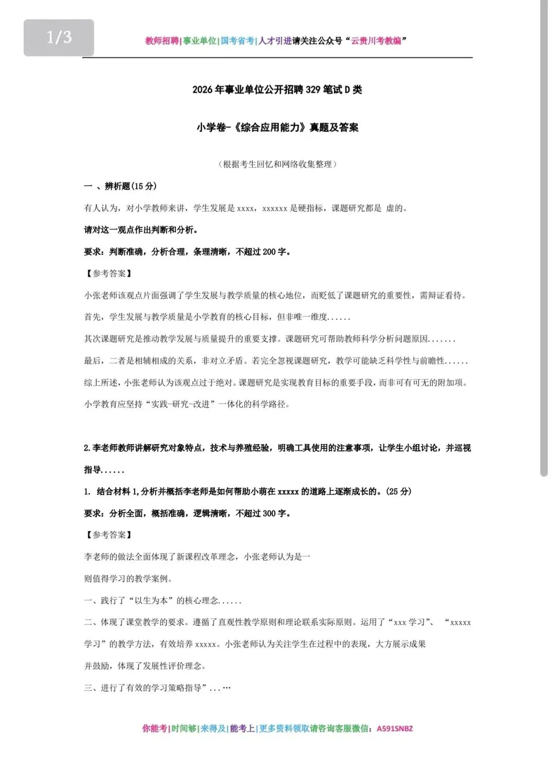 完整版!2026年事业单位3.29笔试D类《职测+综应》真题及答案!
