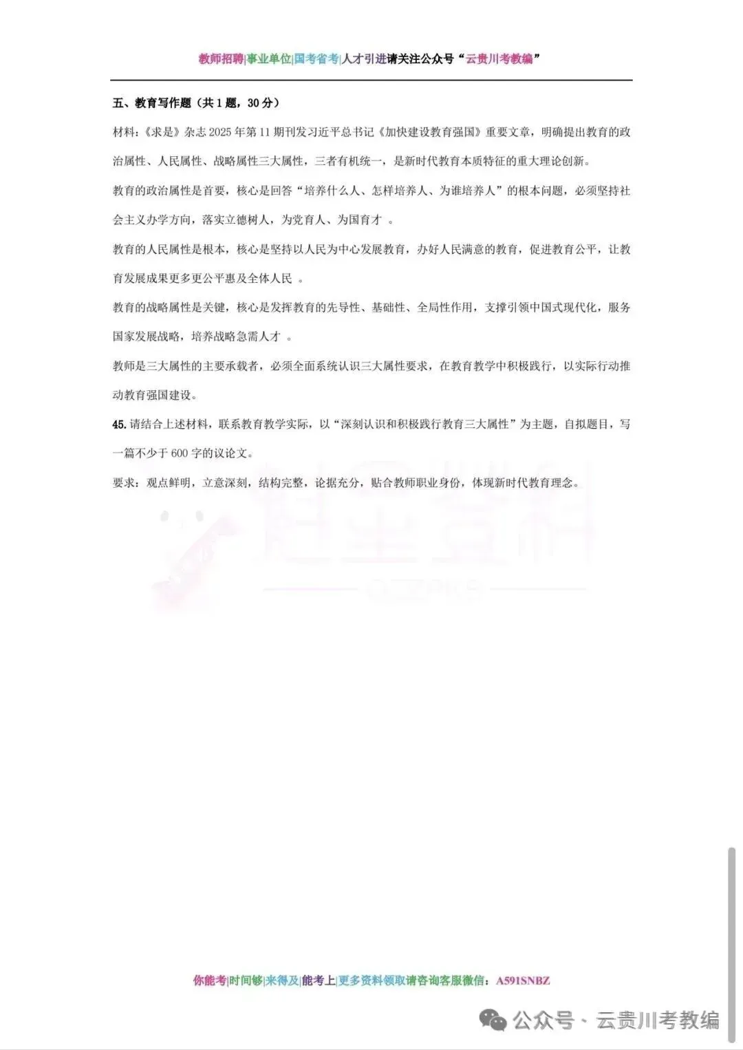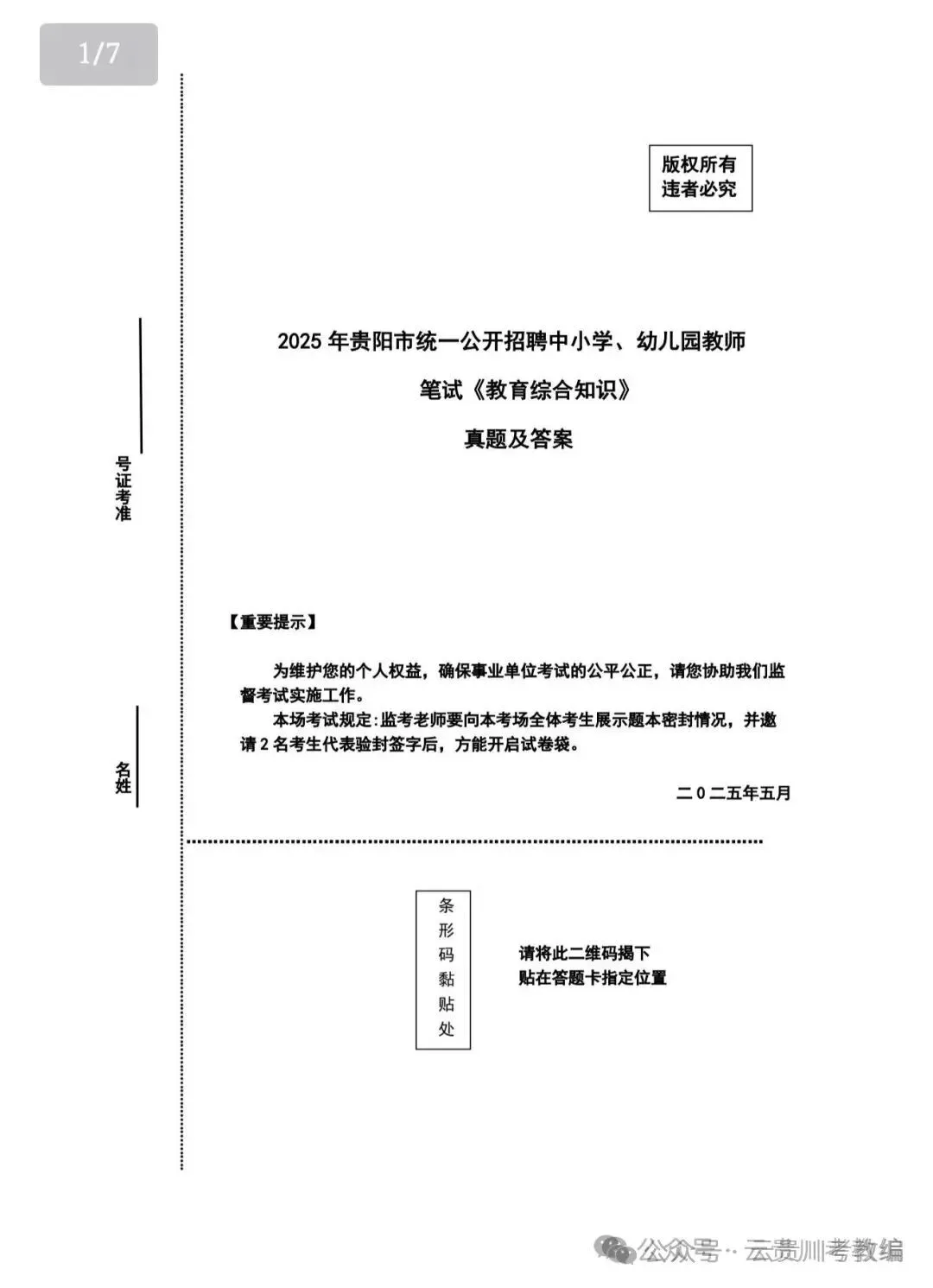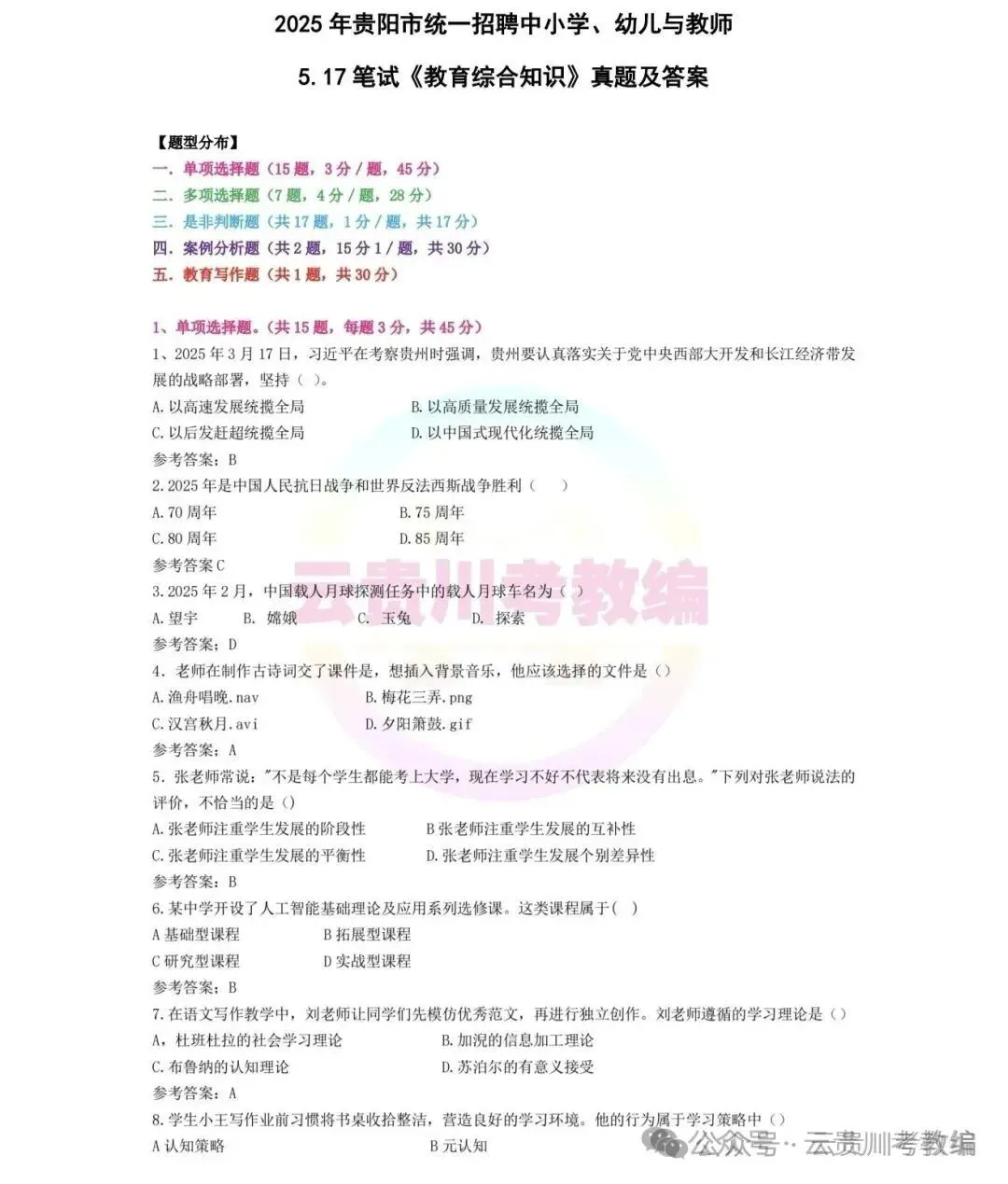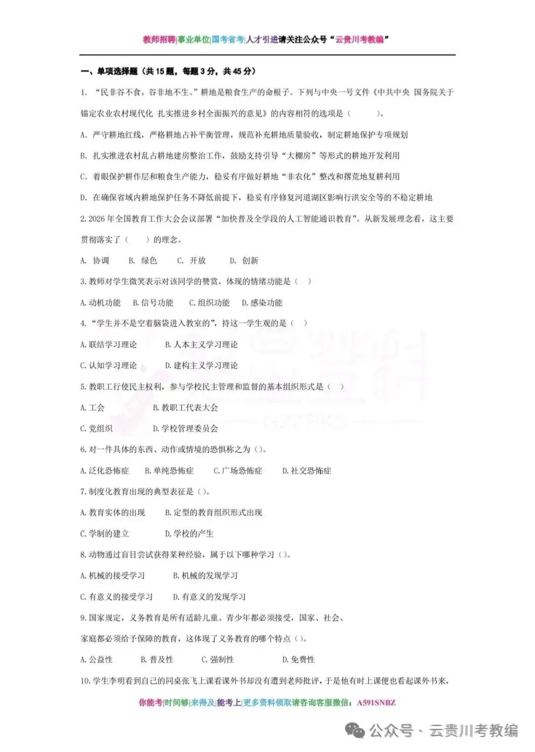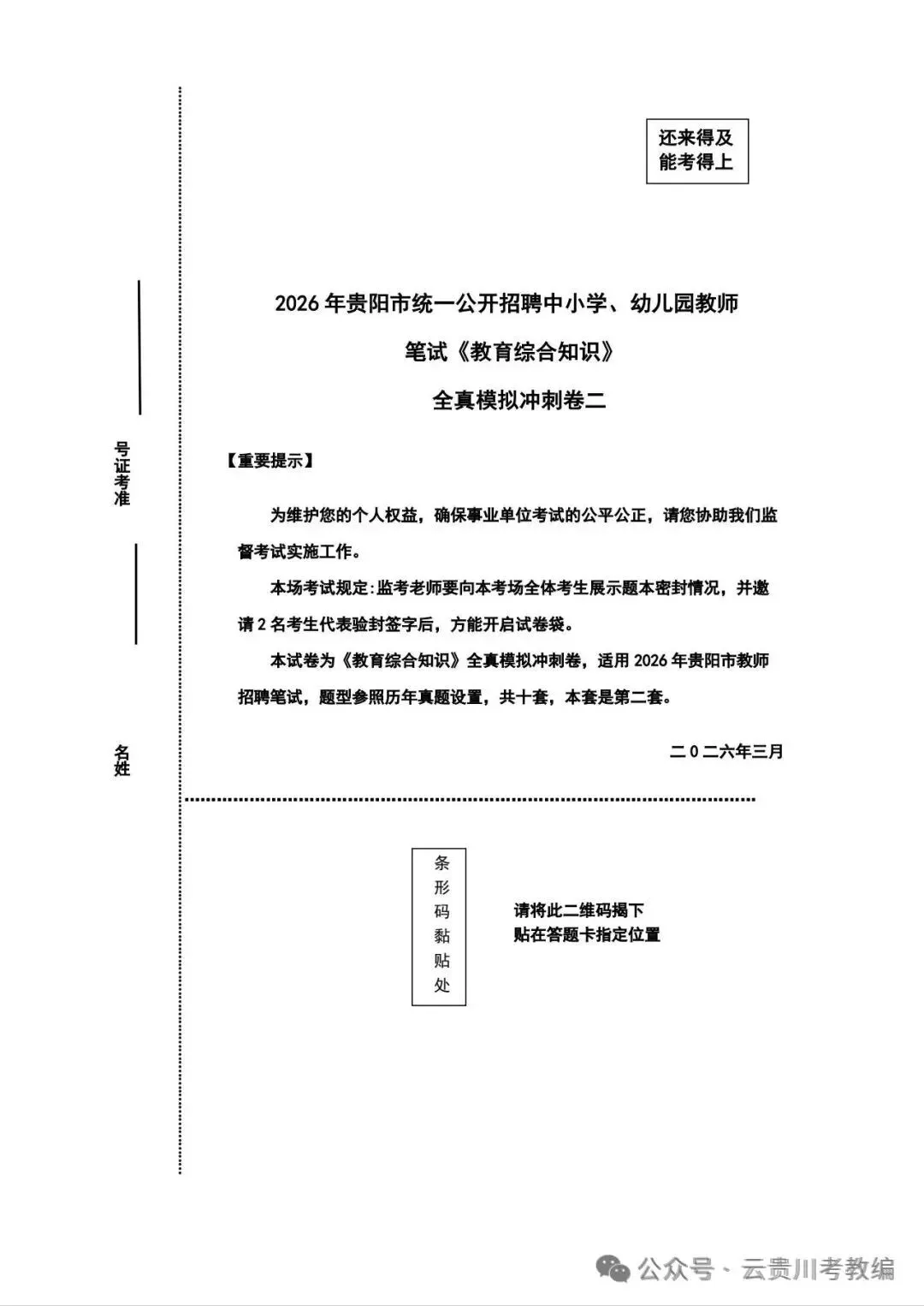 2026年贵阳市统招教师笔试《教综》考前专项提分冲刺资料