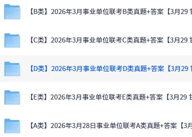 2026年328事业单位联考A类《职测》真题试卷+参考答案【甘肃、青海、宁夏、河北、陕西、山西、安徽、江西、上海、湖南、湖北、黑龙江、吉林、辽宁、重庆、贵州、云南、广西、海南】2026年328事业单位联考A类《综应》真题试卷+参考答案【甘肃、青海、宁夏、河北、陕西、山西、安徽、江西、上海、湖南、湖北、黑龙江、吉林、辽宁、重庆、贵州、云南、广西、海南】2026年328事业单位联考B类《职测》真题试卷+参考答案【甘肃、青海、宁夏、河北、陕西、山西、安徽、江西、上海、湖南、湖北、黑龙江、吉林、辽宁、重庆、贵州、云南、广西、海南】2026年328事业单位联考B类《综应》真题试卷+参考答案【甘肃、青海、宁夏、河北、陕西、山西、安徽、江西、上海、湖南、湖北、黑龙江、吉林、辽宁、重庆、贵州、云南、广西、海南】2026年328事业单位联考C类《职测》真题试卷+参考答案【甘肃、青海、宁夏、河北、陕西、山西、安徽、江西、上海、湖南、湖北、黑龙江、吉林、辽宁、重庆、贵州、云南、广西、海南】2026年328事业单位联考C类《综应》真题试卷+参考答案【甘肃、青海、宁夏、河北、陕西、山西、安徽、江西、上海、湖南、湖北、黑龙江、吉林、辽宁、重庆、贵州、云南、广西、海南】2026年328事业单位联考D类《职测》真题试卷+参考答案【甘肃、青海、宁夏、河北、陕西、山西、安徽、江西、上海、湖南、湖北、黑龙江、吉林、辽宁、重庆、贵州、云南、广西、海南】2026年328事业单位联考D类《综应》真题试卷+参考答案【甘肃、青海、宁夏、河北、陕西、山西、安徽、江西、上海、湖南、湖北、黑龙江、吉林、辽宁、重庆、贵州、云南、广西、海南】2026年328事业单位联考E类《职测》真题试卷+参考答案【甘肃、青海、宁夏、河北、陕西、山西、安徽、江西、上海、湖南、湖北、黑龙江、吉林、辽宁、重庆、贵州、云南、广西、海南】2026年328事业单位联考E类《综应》真题试卷+参考答案【甘肃、青海、宁夏、河北、陕西、山西、安徽、江西、上海、湖南、湖北、黑龙江、吉林、辽宁、重庆、贵州、云南、广西、海南】部分截图: