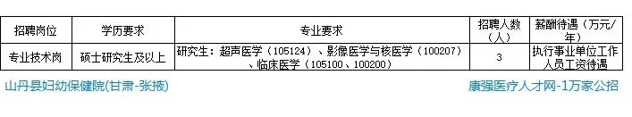 当前位置:首页>应届生招聘>【应届生】山丹县妇幼保健院招聘公告,公立二甲,硕士起,招3人