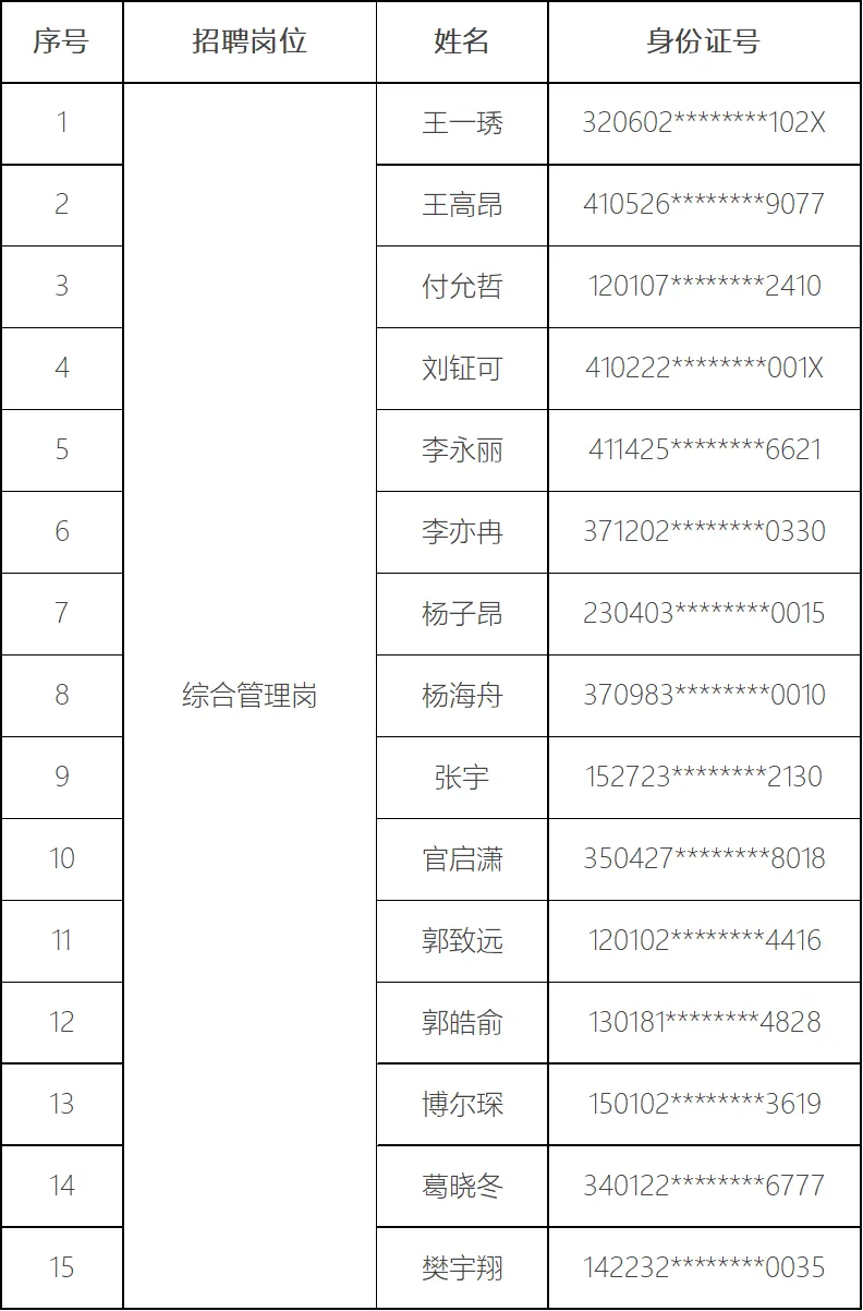 (注:同一岗位人选按姓氏笔画排序)