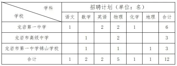 为深入实施新时代人才强市战略,推进“才聚龙岩”行动计划,根据《中共龙岩市委人才工作领导小组关于印发<关于实施“紫金山英才专项行动”的若干措施>等8份文件的通知》(岩委人〔2022〕3号)文件精神,决定重点从知名院校引进12名优秀毕业生来岩工作,作为龙岩市教育类引进生。