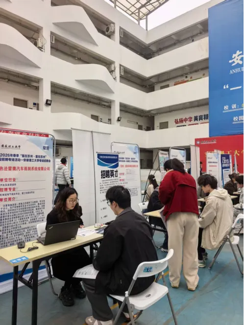 第二站安徽工程大学双选会,安徽工程大学毕业生兼具扎实的专业技能与较强的实践应用能力,与常熟企业一线技术、生产管理、运营服务等岗位需求高度契合,成为本次双选会的核心亮点。招聘现场,各企业招聘人员主动向毕业生介绍企业发展现状、岗位工作内容及晋升通道,针对应届生关注的实习培养、薪资待遇、住宿保障等问题逐一解答;毕业生们结合自身专业特长与职业规划,精准投递简历,现场互动氛围热烈。